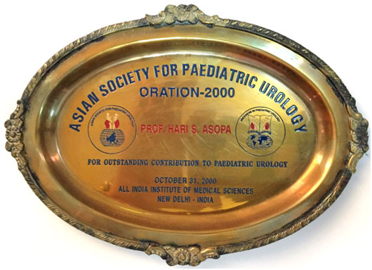 He was invited to be the Founder President of International Society of Hypospadias and Intersex Disorders of which he is now Honorary President. This society awards “ASOPA LECTURE” to eminent international authorities in its Biennial Conference.
